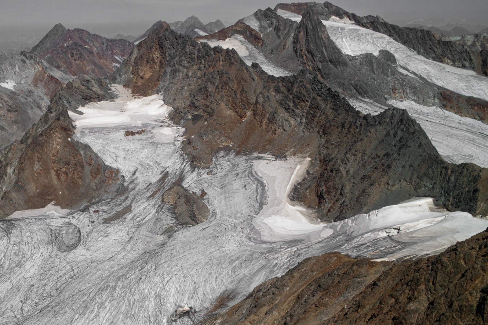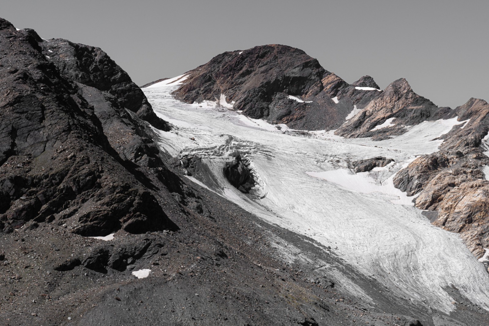 Das Experiment „fleece“, bei dem das Foto eines schmelzenden Gletschers auf ein Stück jenes Gewebes gedruckt wird, mit dem Gletscher bedeckt werden, um sie für Skifahrer befahrbar zu machen, macht uns zusätzlich bewusst: Um uns herum ist etwas im Gange, das wir nicht ignorieren dürfen, wenn wir nicht wollen, dass die Situation außer Kontrolle gerät. Schon jetzt wirken die Konsequenzen vehement auf unseren Alltag ein. Erst vor zwei Jahren, am 3. Juli 2022, starben elf Menschen an der Marmolada in einer Eis- und Steinlawine, die das abbrechende Stück eines Séracs ausgelöst hatte.