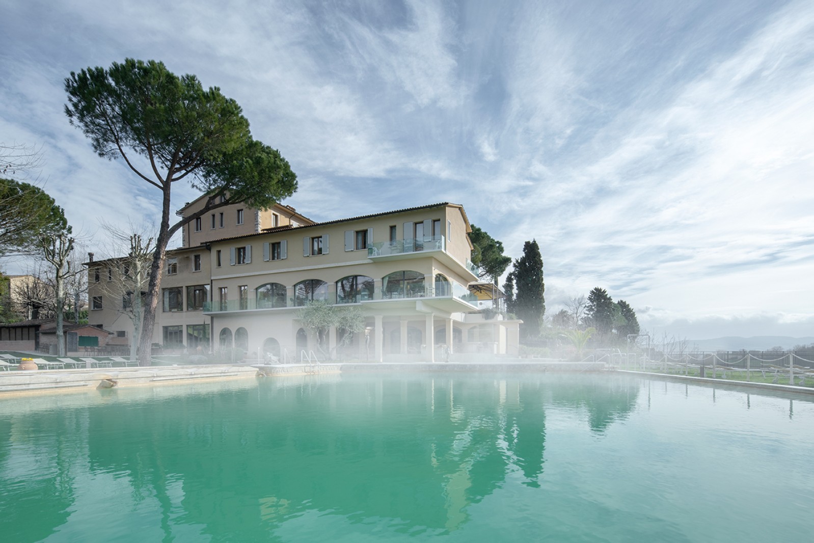 Val d’Orcia. Toscana meridionale. Un monte minerale e colline prodigiose. Paleolitico, neolitico, Etruschi e Romani. San Francesco e i Medici. Santa Caterina e la storia d’Italia. Il tutto corroborato da acque sulfuree che sgorgano dalla notte dei tempi. Il Romanico, gli affreschi e i campanili, i campi di grano e il moto ondoso delle colline. Poi il vino, l’olio, le pitture senesi, le strade bianche, le miniere di un tempo e le lotte fratricide. Dante, guelfi e ghibellini. Miseria e nobiltà degli esseri umani. Che emozione immaginare lo scorrere della vita immersi nelle acque benefiche delle nostre piscine. Le nuvole si inseguono nel cielo, di notte le stelle illuminano i pensieri e la Rocca d’Orcia lassù, in alto e sopra di noi, che c’invita a sognare e a guardare i segni del tempo, immobile e perpetuo, che come il fiume, scivola giorno dopo giorno oltre di noi.